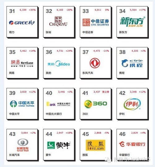 2014中国品牌价值榜单