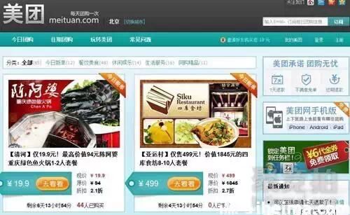 创始人王兴用四年的时间把美团发展成为包括团购、猫眼电影、美团酒店及美团外卖在内的多元化经营项目。目前,美团网有三个盈利来源:佣金、差价和广告。其中,佣金和差价是美团网的主要收入来源,两者相加占其收入的90%以上。上半年,美团移动端交易额已达110亿元,预计2014全年交易额可达400亿元。易观最新数据显示,美团以55%的市场份额位居中国团购榜榜首。