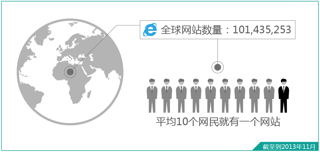 先不说谷歌、facebook、淘宝等这些互联网巨头都是从网站起家的,只要想靠互联网淘金,网站就是必不可少的落脚点。根据Netcraft调查的结果,截至到2013年11月,全球网站数量超过1亿数量大关,达到101,435,253个。也就是说,全球平均10个网民就有一个网站,地球上平均大约60个人就有一个网站。